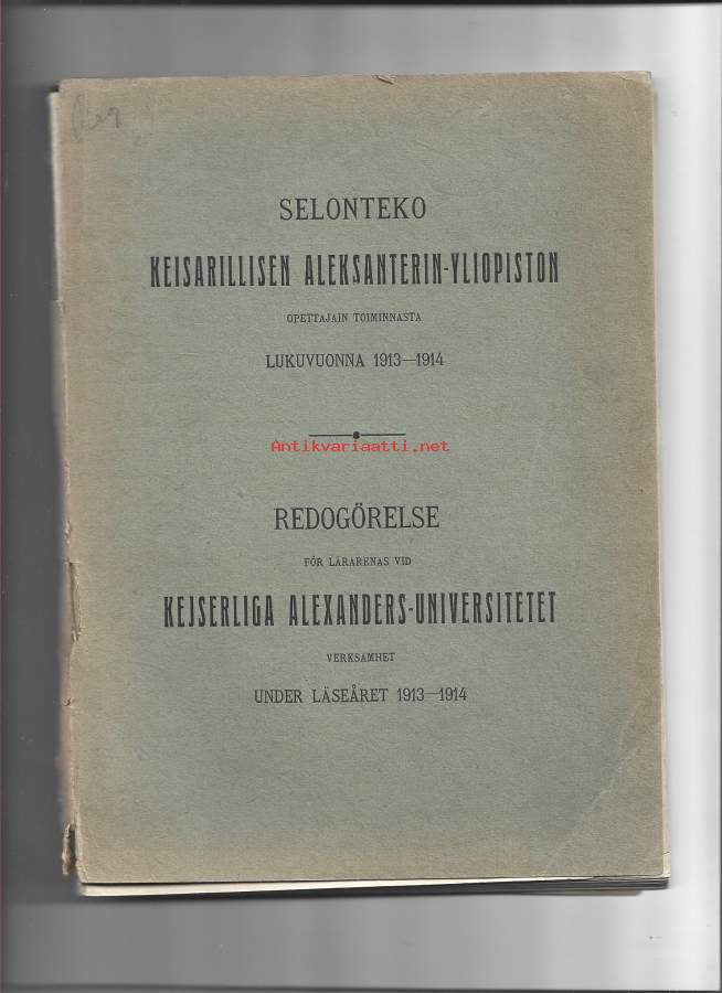 Selonteko Keisarillisen Aleksanterin Yliopiston opettajain toiminnasta 1913 -1914