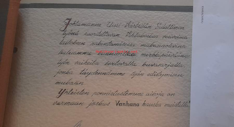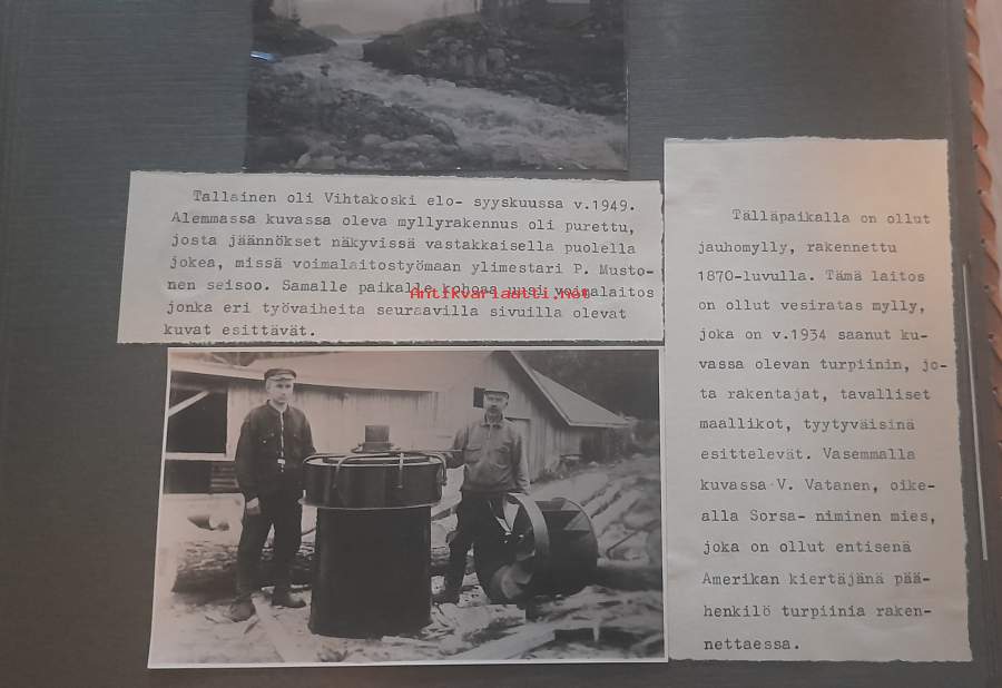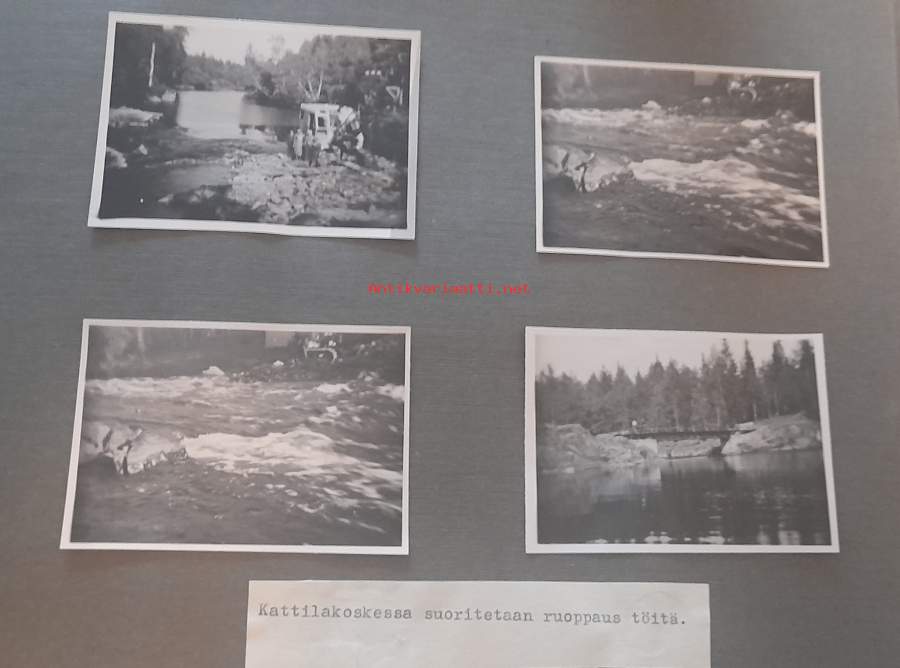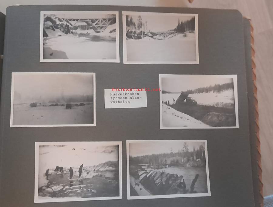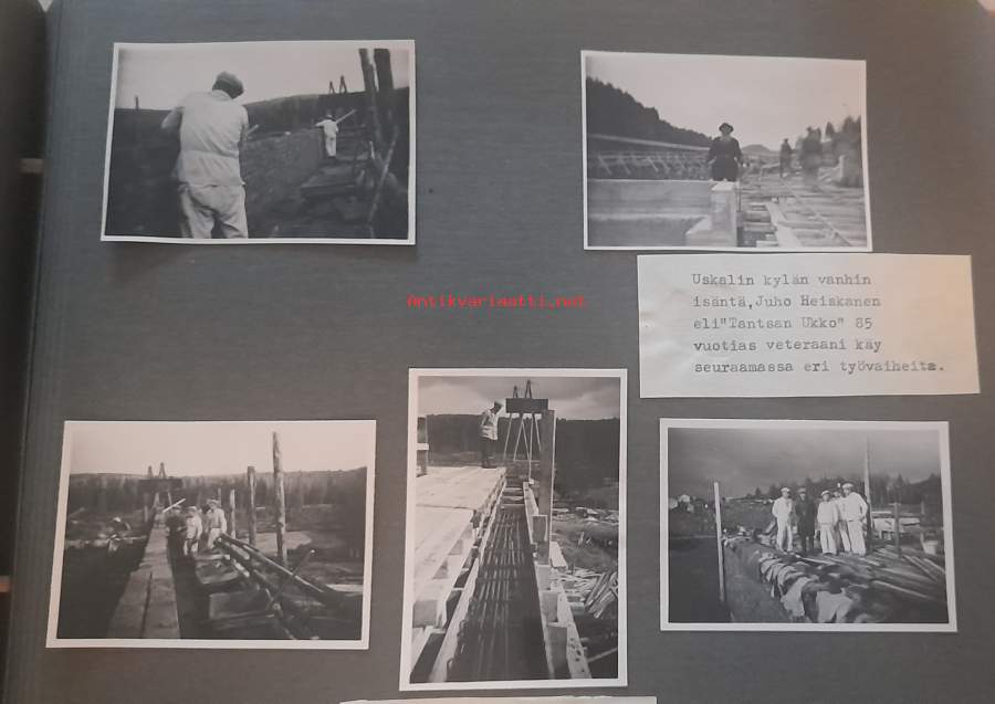 60. vuotis muistokansio. Vihtakosken työmaa, Kattilakosken ruoppaus, Ruskeakosken työmaa27 aukeamaa mustavalko valokuvia, liimattu alustaan.Onnitteluun osallistuneiden nimiä.
