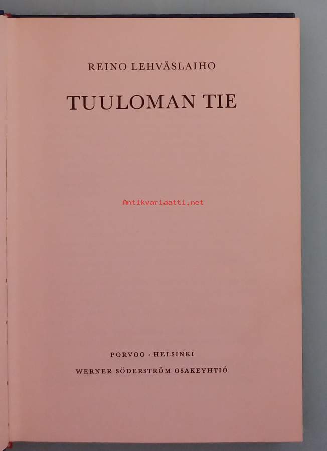 Tuuloman tie. (Dokumentaarinen romaani, harvinainen, kauno)