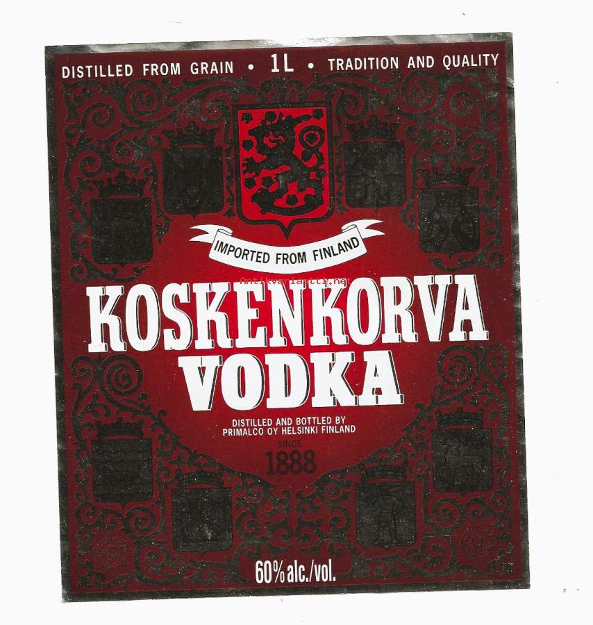 Koskenkorva Vodka 60 % 1 l viinaetiketti