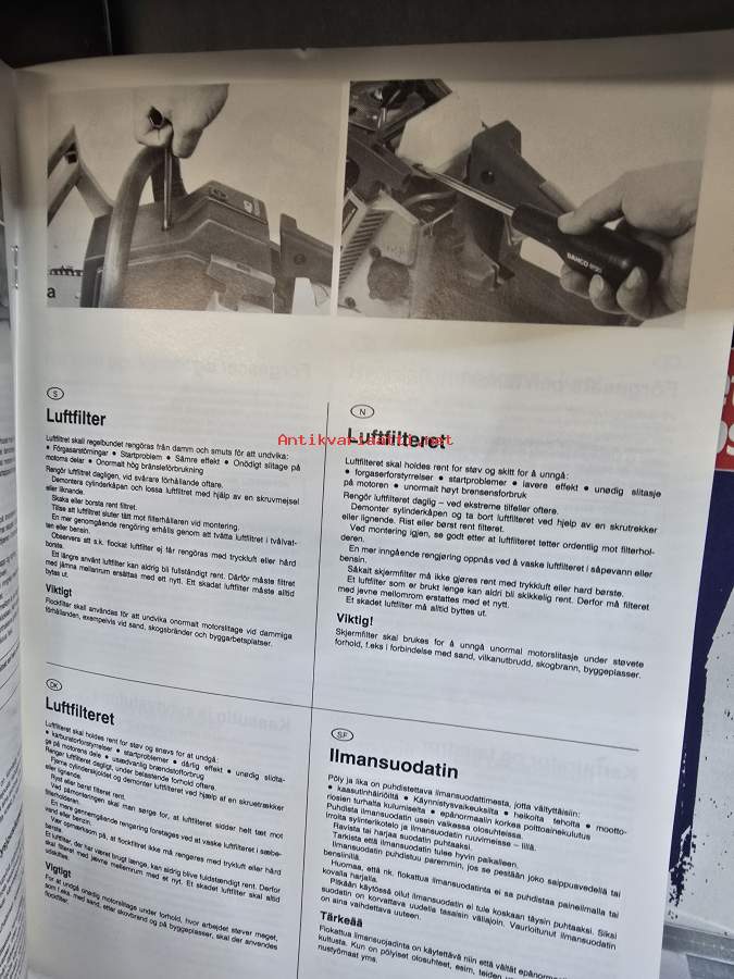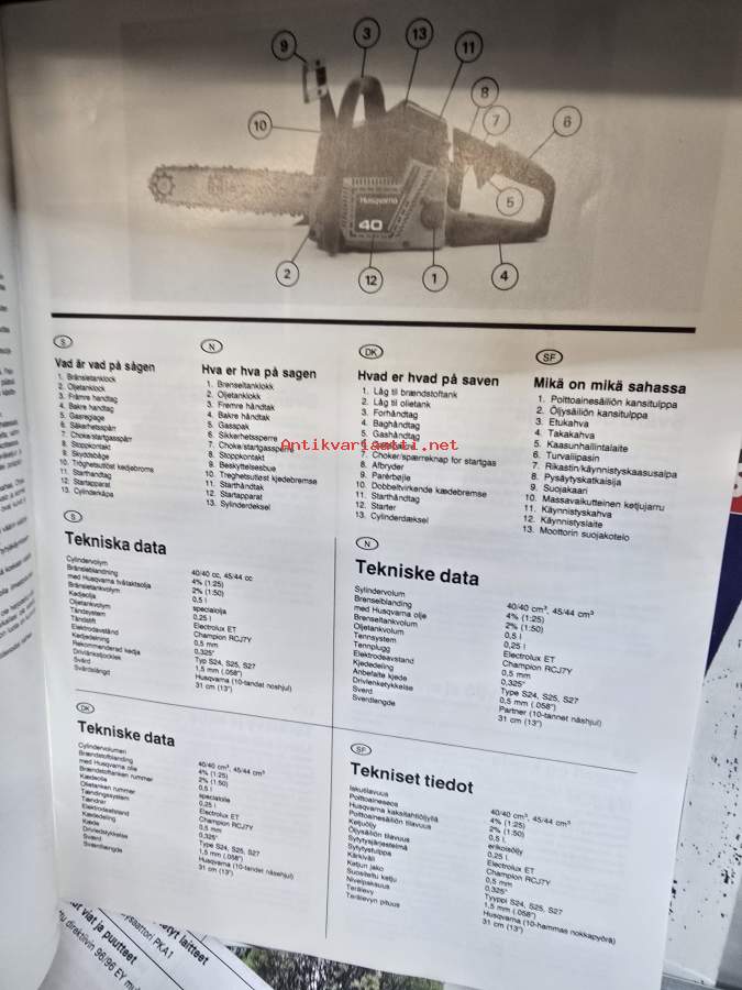 4 kielinen husgvarna moottorisahan käyttöohje 1988. Suomi, norja, tanska ja ruotsi.