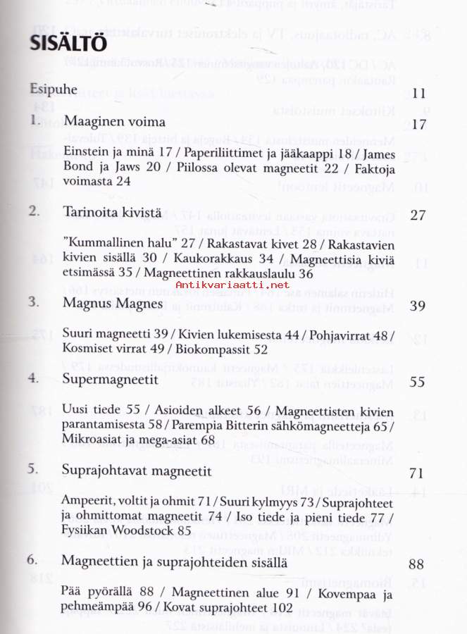 **Tämä teos kertoo magneettien historian, kulttuurihistorian, fysiikan ja tekniikan hauskasti ja runsain anekdootein. Se ulottuu antiikin uskomuksista materiaalitieteen viimeisimpiin saavutuksiin. Se antaa viitteitä myös magneettien tulevaisuudesta.**Elämämme on täynnä magneetteja. Niitä on kodissasi tai autossasi kymmeniä, vaikka niiden olemassaolosta ei yleensä tiedetä eikä niitä näe. Kannat magneetteja korvalappustereoissa ja ne tuottavat sähkön, jota ilman elämäsi olisi aivan toisenlaista.Ilman magneetteja nykyinen yhteiskuntamme ei toimisi.**