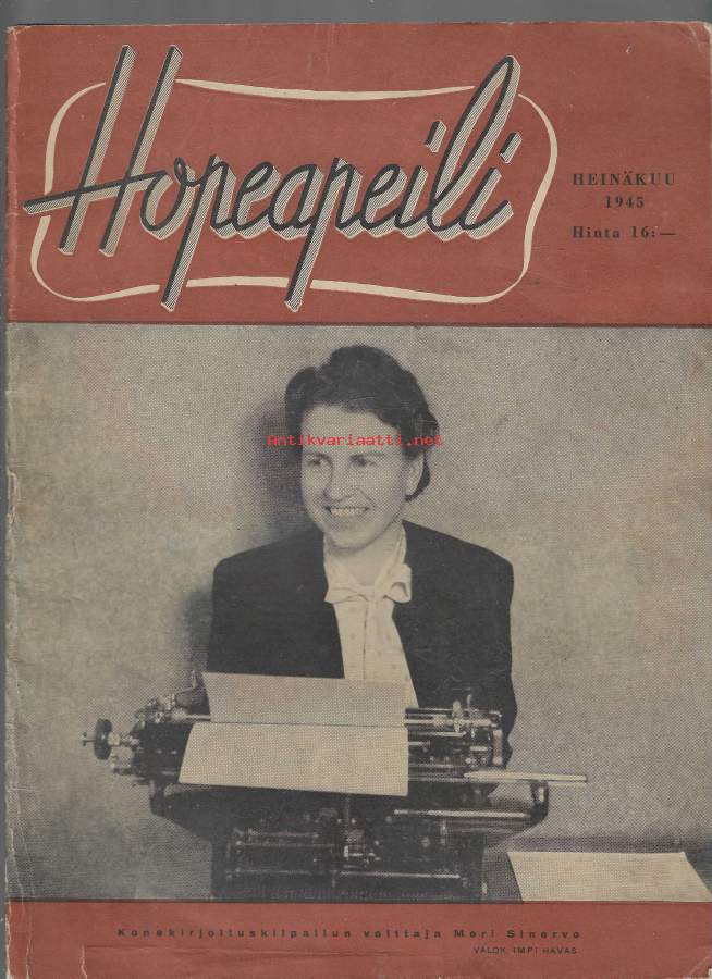 Hopeapeili 1945 nr 2, kansikuva Salme Marjatta Kuuloja