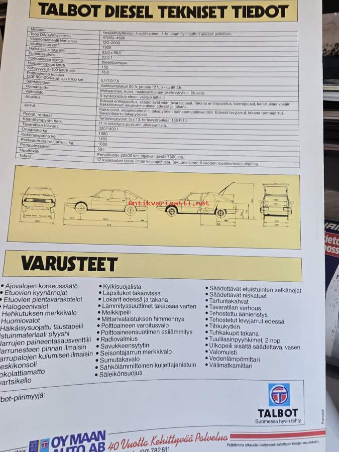 Talbot - Iso Kotimainen Talbot 1980 -myyntiesite