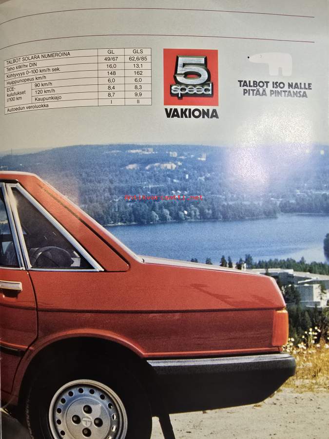 Talbot - Iso Kotimainen Talbot GL, GLS 1980 -myyntiesite