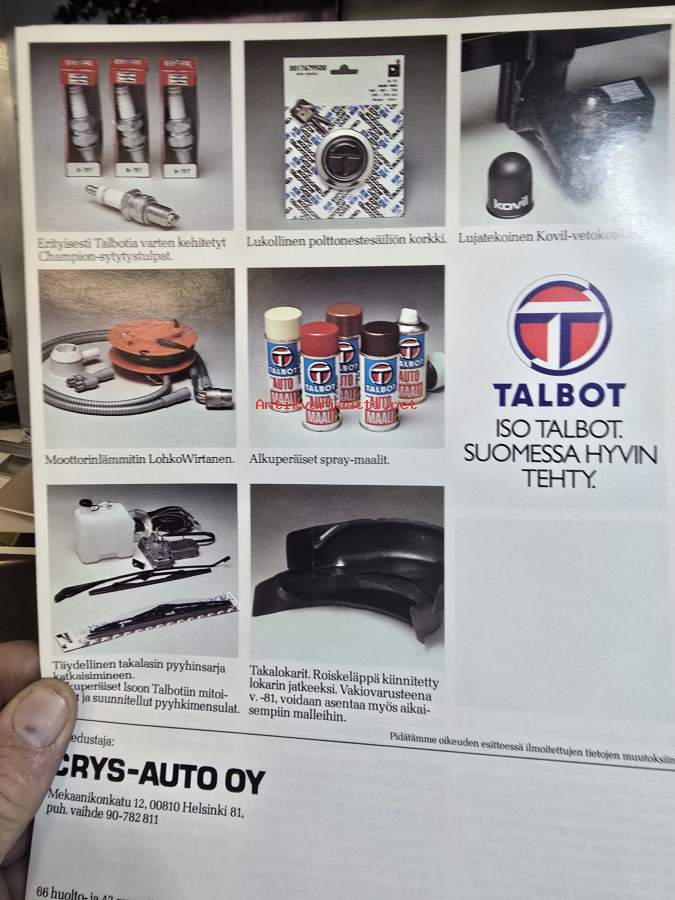 Talbot - Iso Kotimainen Talbot GL, GLS 1980 -myyntiesite