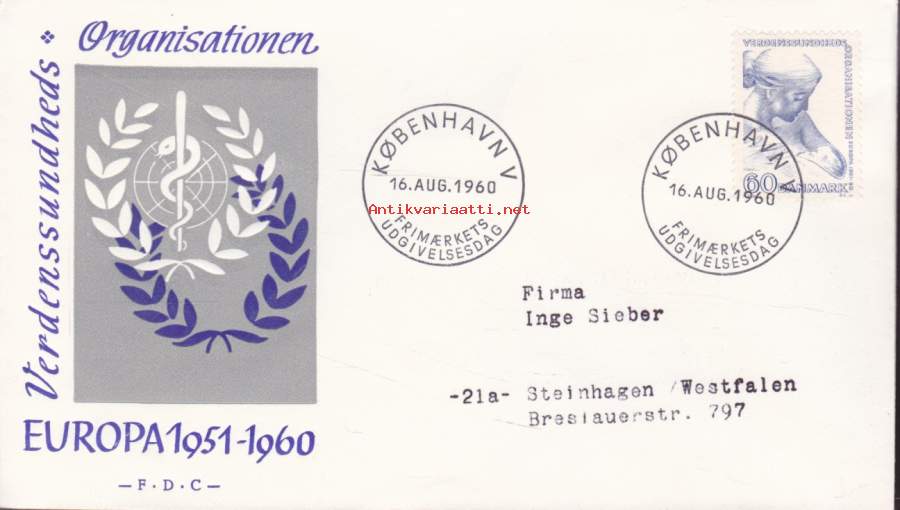 FDC Tanska - Europa 1951-60 (16.8.1960)