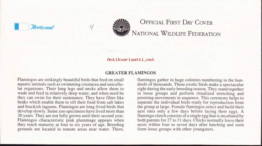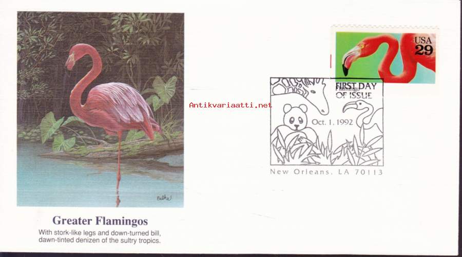 FDC ensipäiväkuori USA - Greater Flamigos (1.10.1992). Isoflamingo (luonto, linnut, kahlaajat)