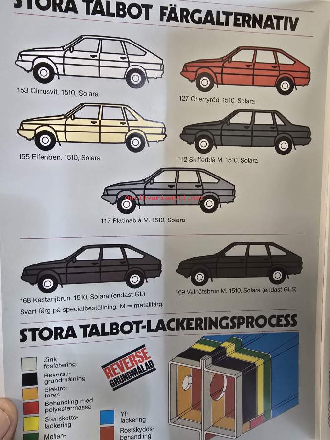 Talbot/Simca (Chrysler) Matra France + Chrysler (Rootes, Sunbeam) -automaalien värimallit