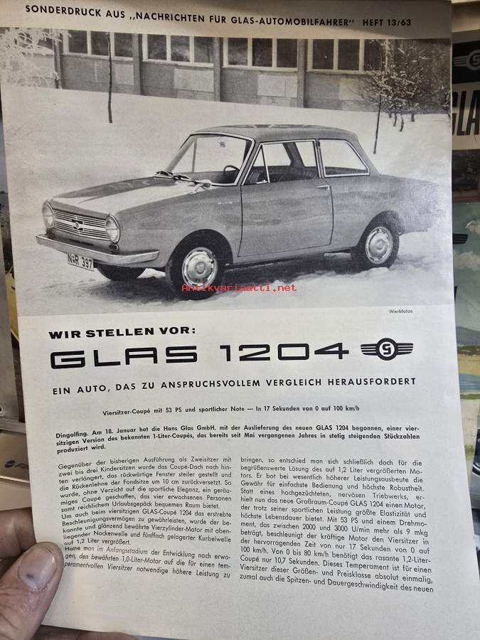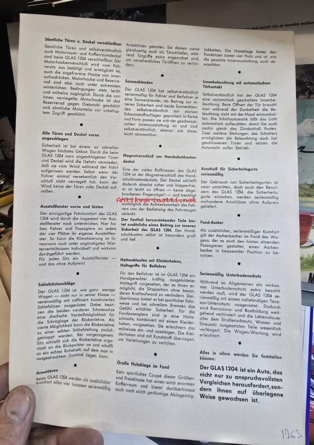 Glas S 1204 1963 - säätöarvokortti / säätöarvot, monikielinen -technical specifications, multilingual