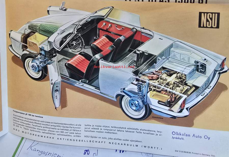 NSU - auton keulamerkki etumerkki metalli/muovi 8x8x3 cm / NSU Motorenwerke AG (NSU) oli saksalainen ajoneuvojen valmistaja. NSU Wankel Spider 1964-1967