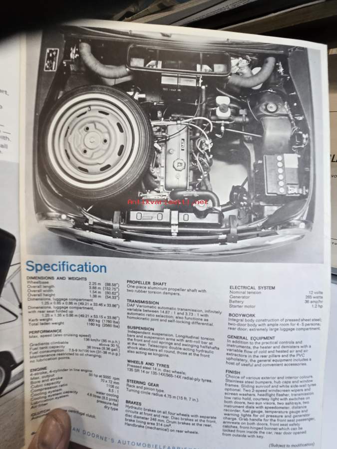 Daf 55 & 55 Coupé 1968 Sun Electric Corporation -säätöarvokortti, monikielinen - englanti - espanja - saksa - ranska -Technical specifications card