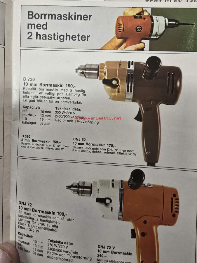Black & Decker sähkötyökalut 1974 -tuoteluettelo / myyntiesite / sales brochure