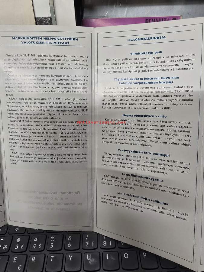 Minolta 35 mm yksisilmäiset peilikamerat -myyntiesite