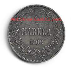 1 markka 1908 hopeaa