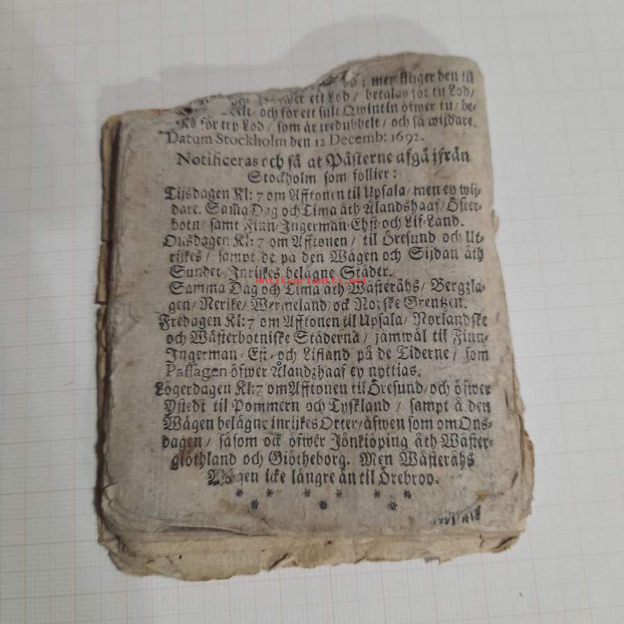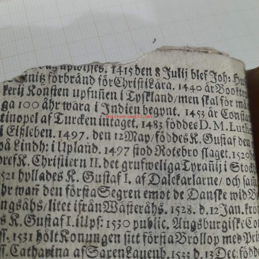Kalenteri 1699 ruotsinkielinen kertoo mm. 1400 ja 1500 luvun tapahtumista