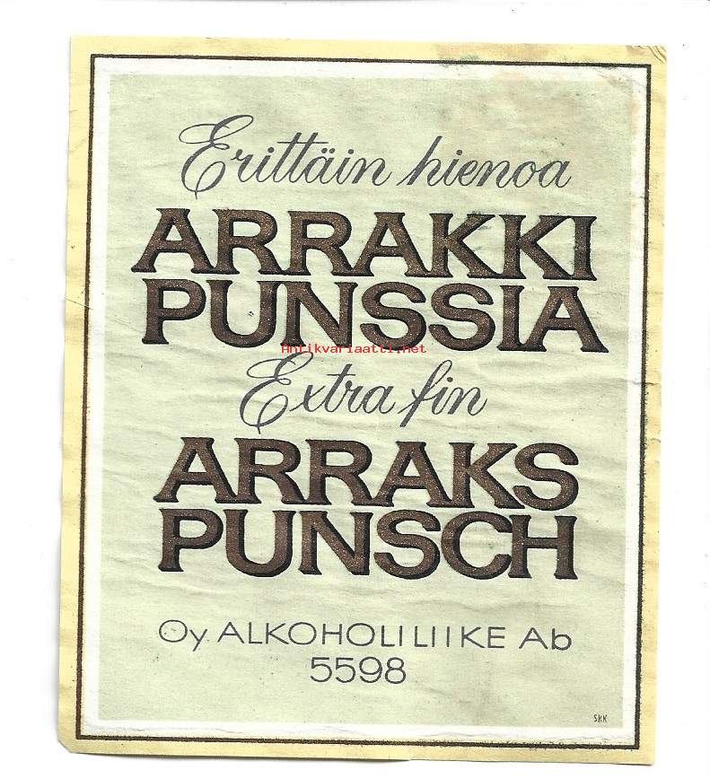 Erittäin hienoa Arrakki Punssianr 5598 - viinaetiketti