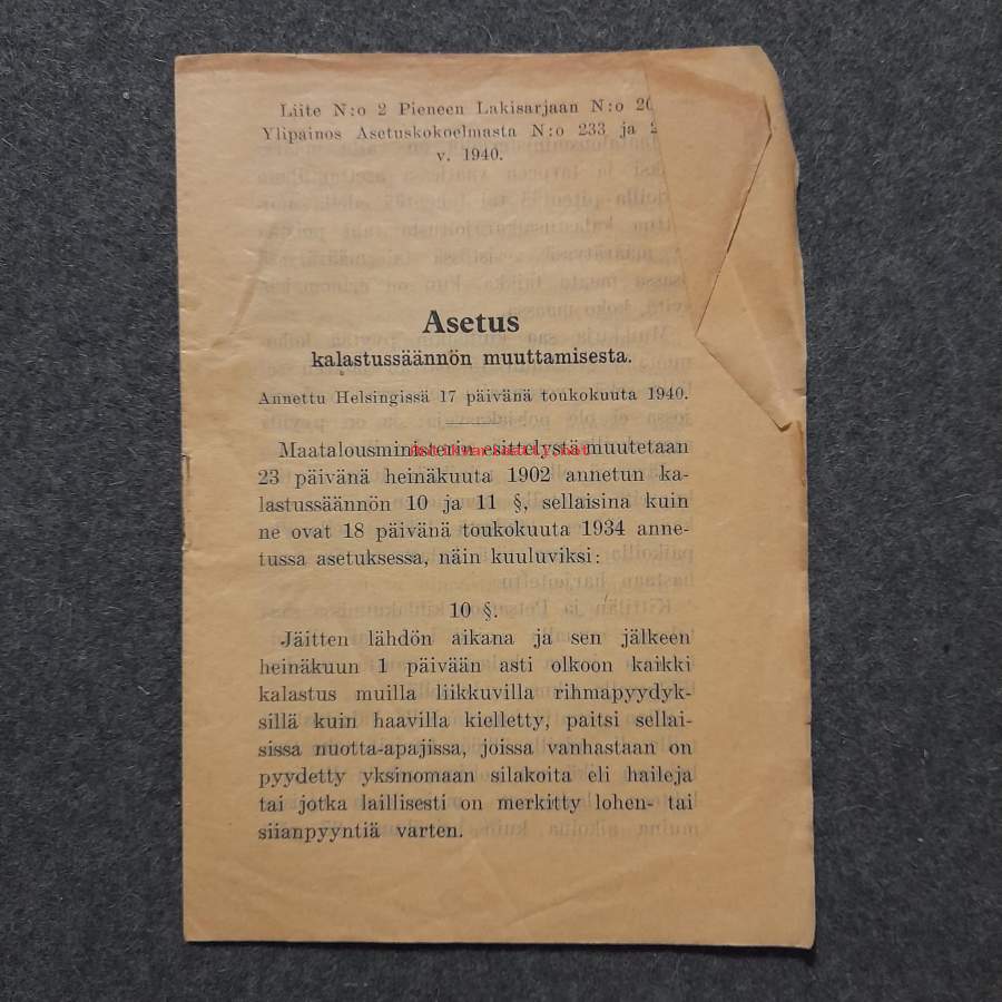 Pieni lakisarja no.20 Asetus kalastussäännön muuttamisesta