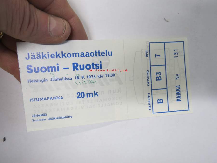 Jääkiekkkomaaottelu Suomi - Ruotsi, Helsingin Jäähalli 18.9.1973 -pääsylippu