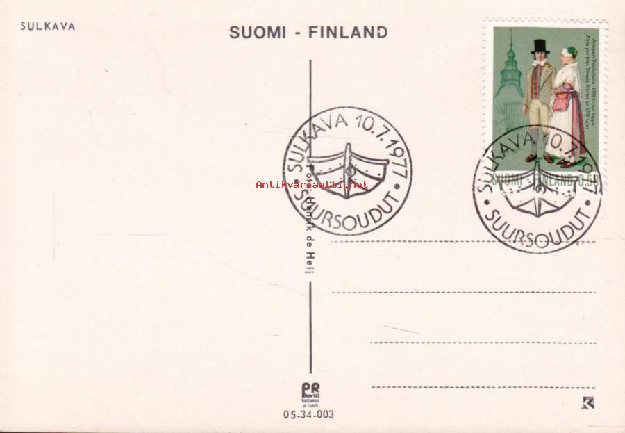 Filatelia Suomi - Sulkavan soudut / suursoudut 10.7.1977. Erikoisleimakortti. (PR Kortti 05_34_003)