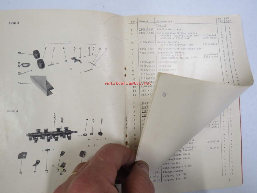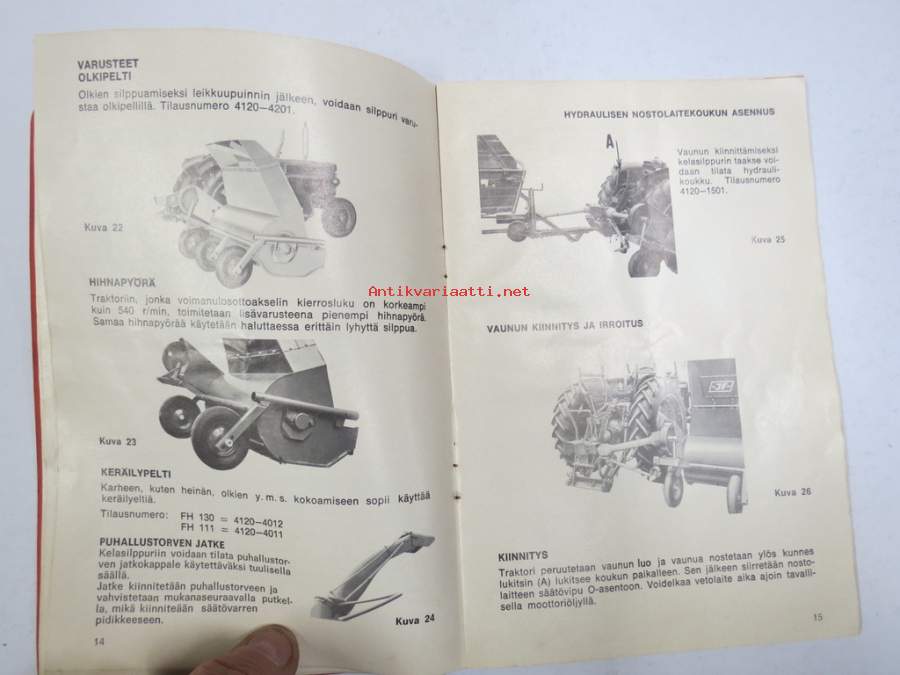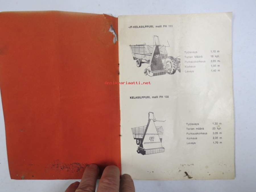 JF FH 111, FH 130 kelasilppuri -käyttöohje ja varaosaluettelo