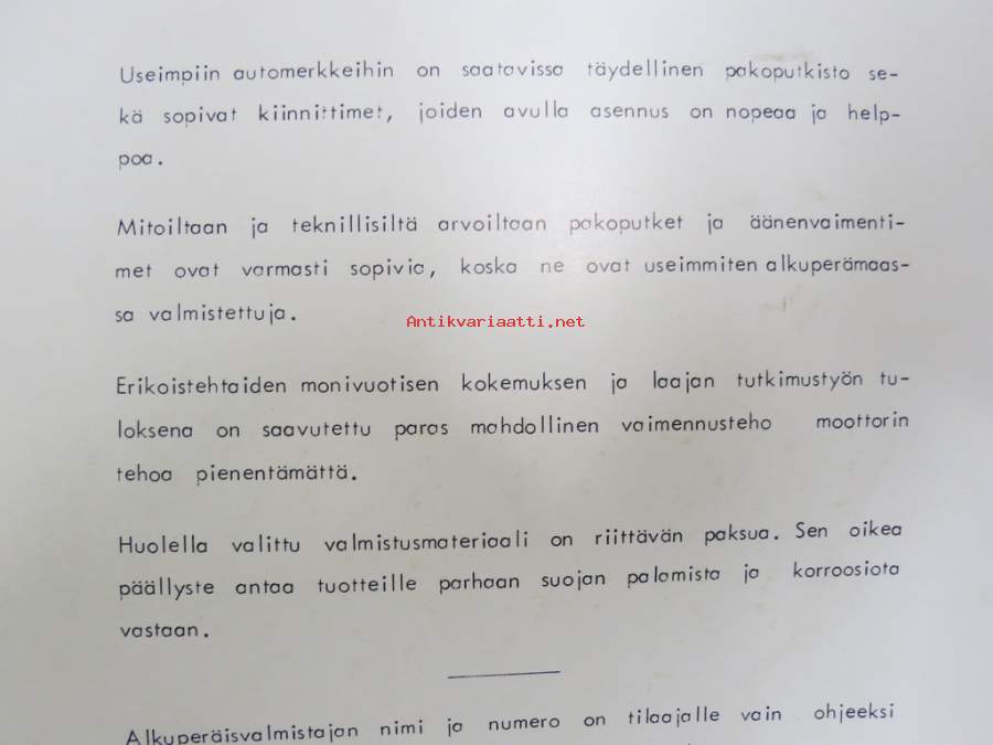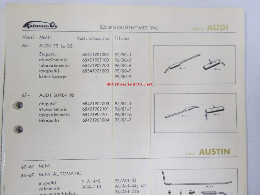 Koivunen Oy - Äänenvaimentimet, pakoputket, kiinnikesarjat -tuoteluettelo / kuvasto