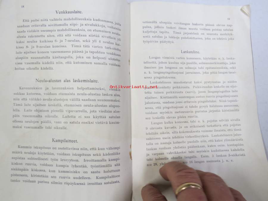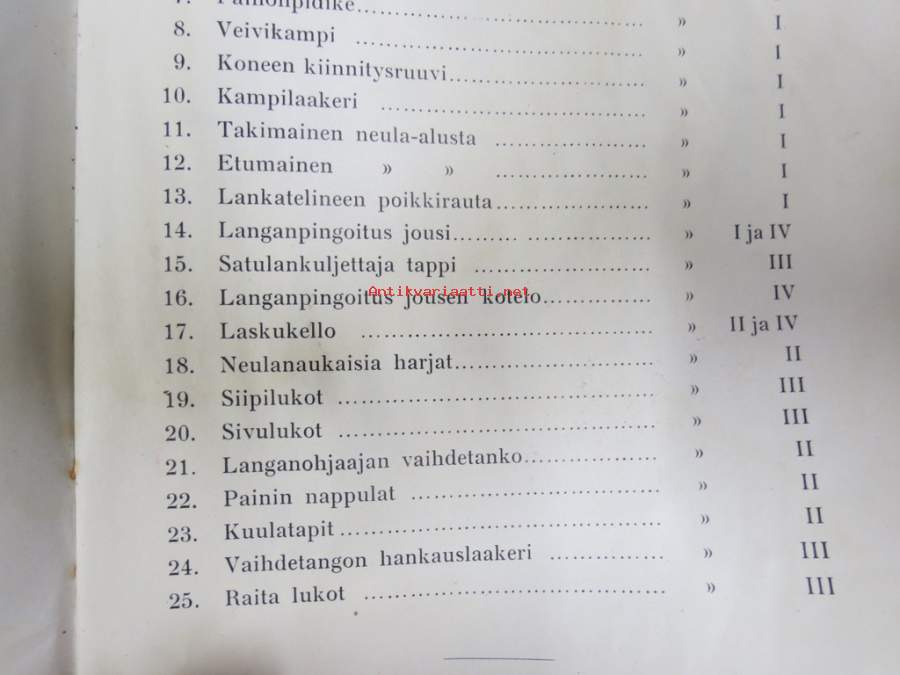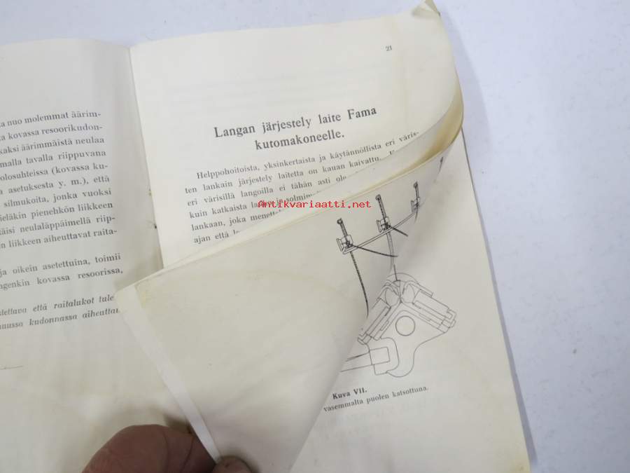 Kuittauskirja Ompelukoneosakeyhtiö Husqvarna, kivityömies Oskar Laine, Vehmaa, 7.10.1935 tehty vähittäismaksusopimus ompelukoneesta, kirja jossa mukana