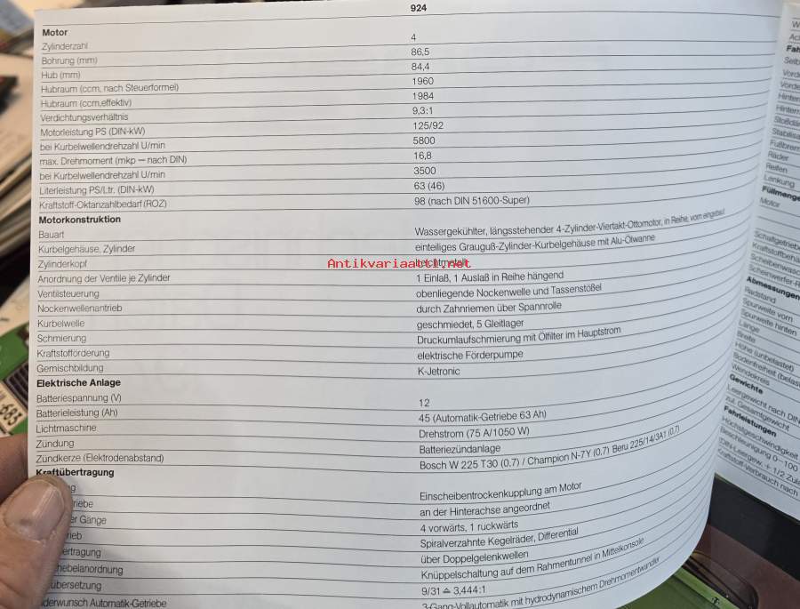 Porsche 968 vm. 1994 -myyntiesite (koko 15,5 x 21 cm, kovat kannet, 40-sivuinen kirja, painettu elokuussa 1993), saksankielinen