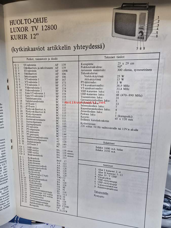Luxor kurir 12 tuuman matka-tv vastaanotin huolto-ohjeet
