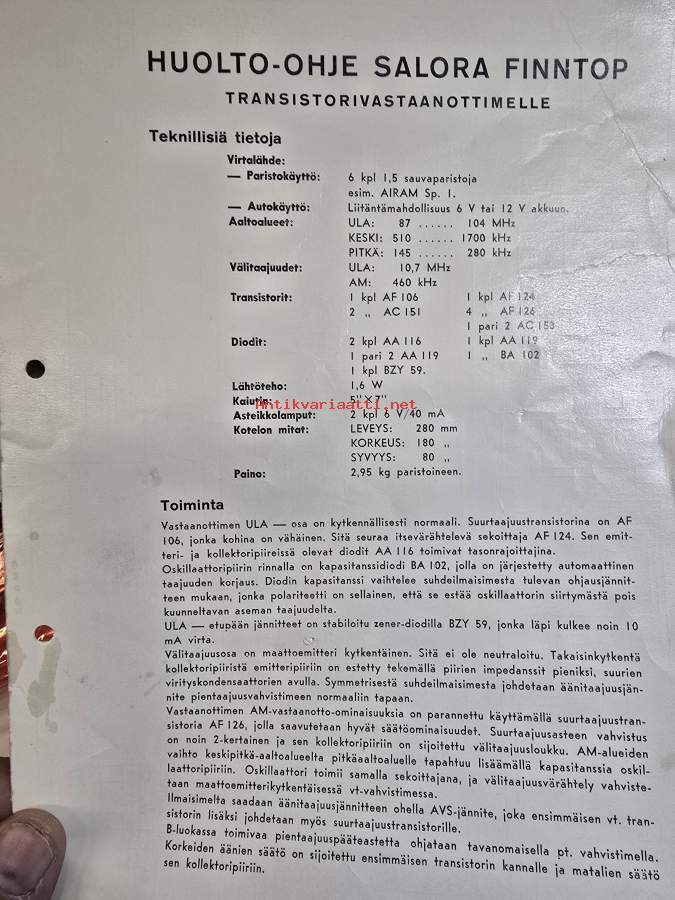 Salora finntop radio huolto-ohje.