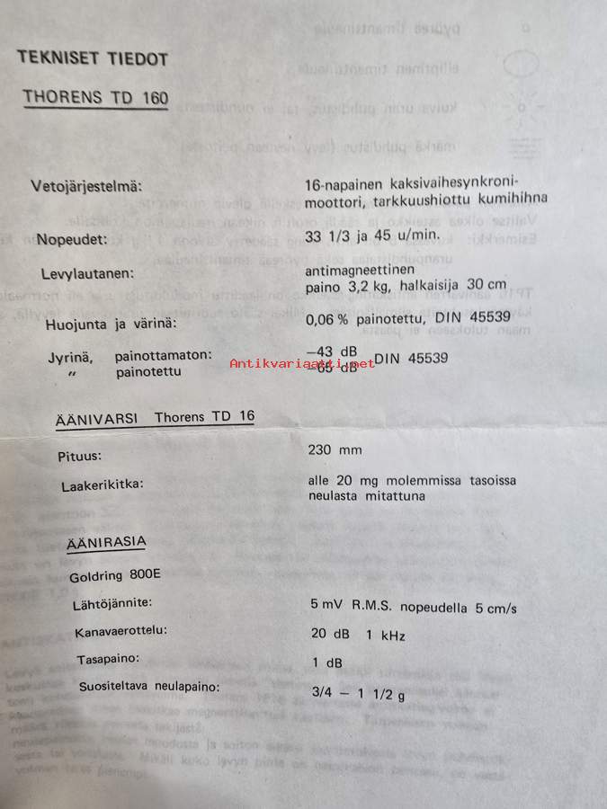 Thorens TD 160 käyttöohje.