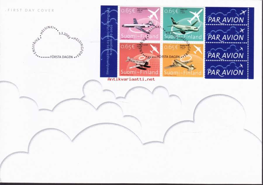 Suomi FDC (ensipäiväkuori) Ilmailun historiaa V58 (3.3.2003). LAPE 1636-39.