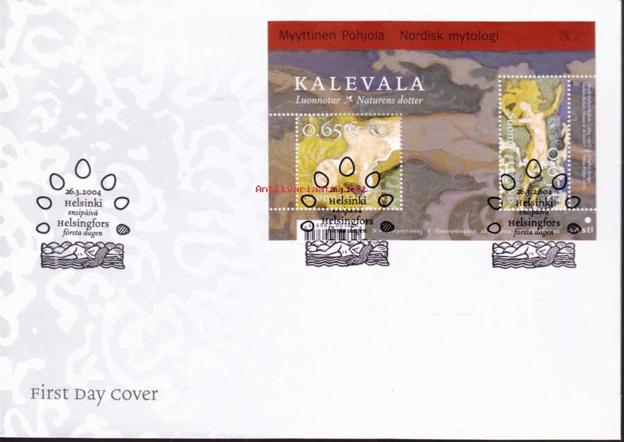 Suomi FDC (ensipäiväkuori) Pohjola - Myyttinen Pohjola BL34 (26.3.2004). LAPE 1694-95.