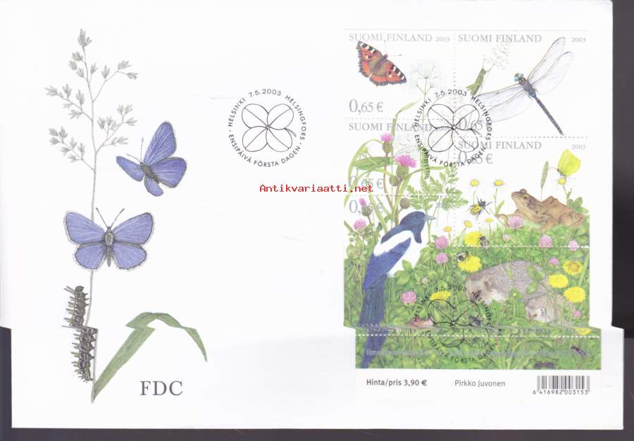 Suomi FDC (ensipäiväkuori) Kesä pihapiirissä BL31 (7.5.2003). LAPE 1694-95.