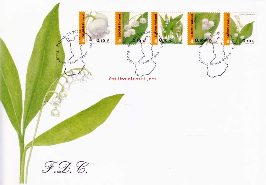 Suomi FDC (ensipäiväkuori) Kukkia - tarramerkkejä 0,10€ (1.1.2002). LAPE 1590-94.