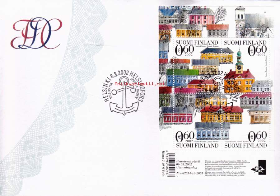 Suomi FDC (ensipäiväkuori) Vanha Rauma (6.3.2002). LAPE 1609-12.
