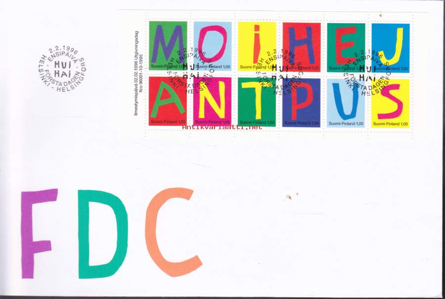 Suomi FDC (ensipäiväkuori) Ystävyydellä V30 (2.2.1996). LAPE 1314-1325.