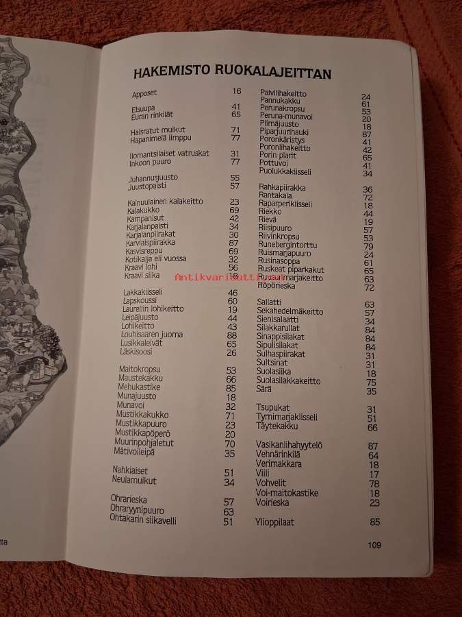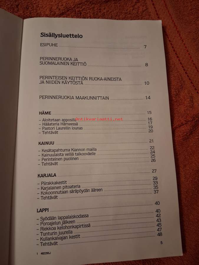Ruuan raakaaineiden ja valmistuksen lisäksi kerrotaan kattauksesta, käytöksestä ruokaillessa sekä eri juhlapyhien ruuista