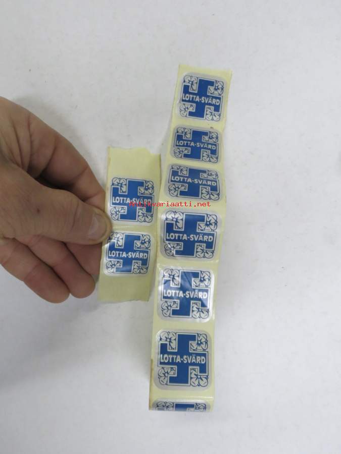 Lotta-Svärd tarroja 10 kpl -vaasalaisen koho- ja tarrapainon (Herman Mattsson Korkokuvapaino & Pussitehdas) tuotantoa arviolta 1960-luvun lopusta