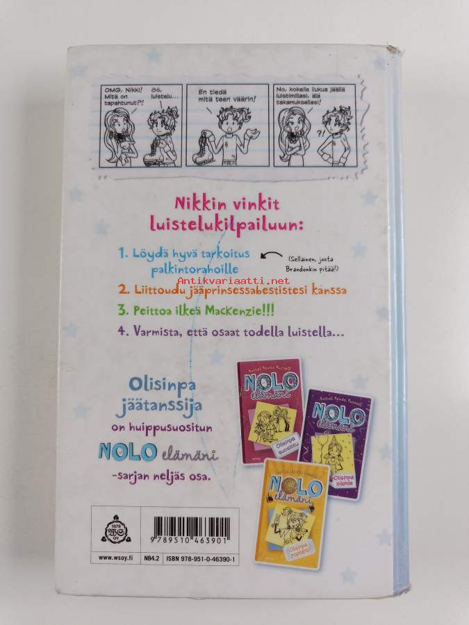 Muu(t) tekijä(t): Jani BohmSarja: Nolo elämäni 4Alkuteos: Dork diaries.Asiasanat: päiväkirjat, ystävyys, nuoret, tytöt, luistelu, yksityiskoulut, koulunkäynti, suosio, koulukaverit