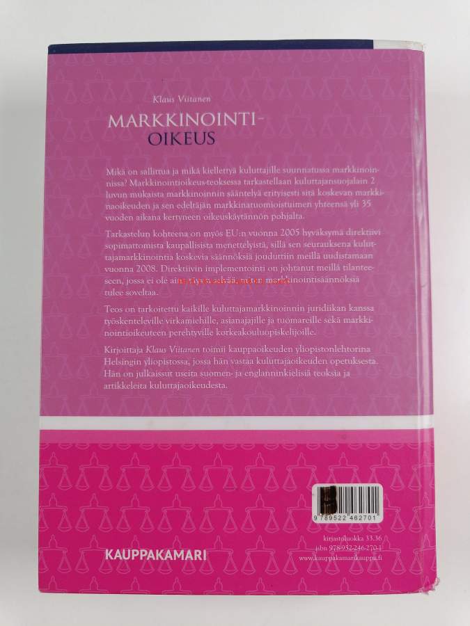 Asiasanat: markkinointi, mainonta, lainsäädäntö, oikeustapaukset, kuluttajansuoja, markkinointiviestintä, oikeudellinen sääntely, valvonta, eurooppaoikeus, markkinaoikeus, kuluttajansuojalaki, hyvä tapa, EU-direktiivit, vilpillinen kilpailu