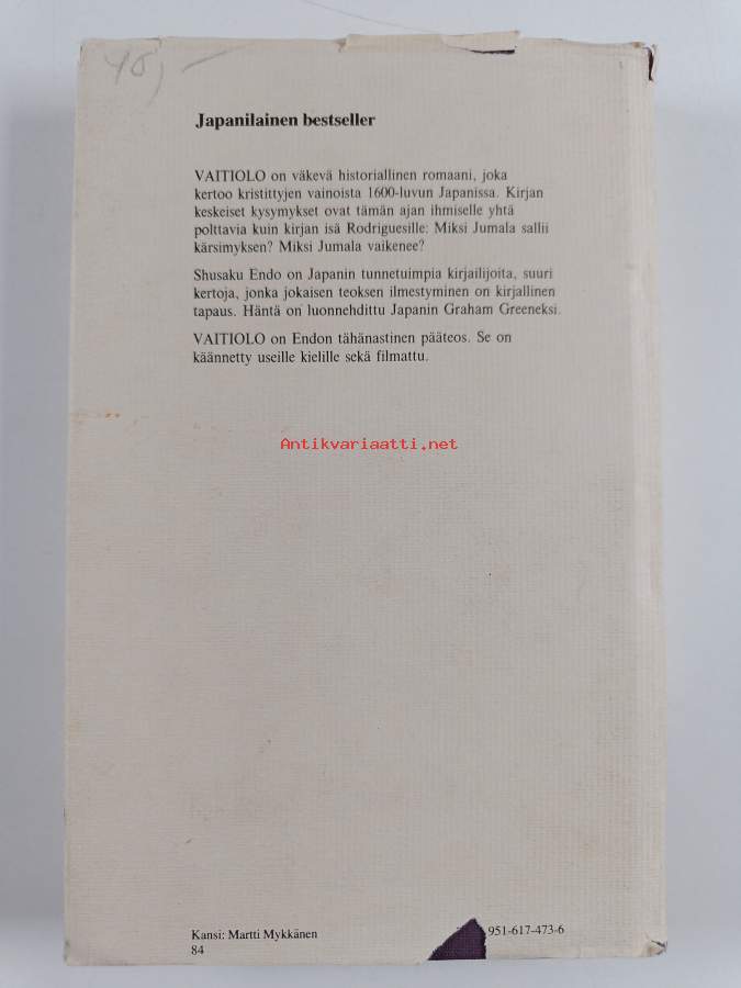 Hyvä. Hieman kulumaa kansissa, selkämyksessä hieman vinoutta, edessä hintalapun jäämää. Kansipaperin kunto: kulumaa/pienehköjä repeämiä & tahraisuutta
