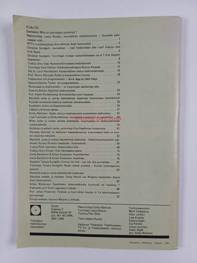 Journalismi ja rauhantyö : Teema-Linkki elokuu 1982