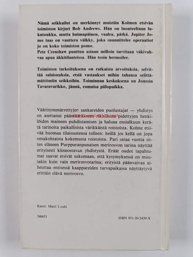 Muu(t) tekijä(t): Kristian KardenSarja: Alfred Hitchcock ja kolme etsivää 34Alkuteos: The three investigators in the mystery of the purple pirate