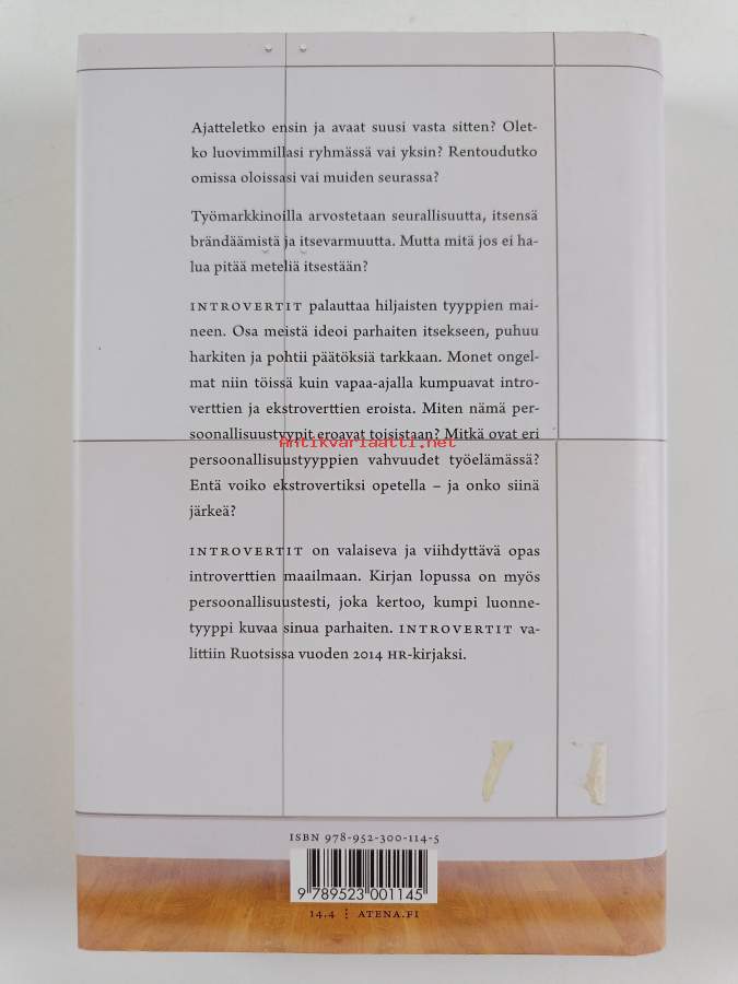 Muu(t) tekijä(t): Ulla LempinenAlkuteos: IntrovertAsiasanat: ihmissuhteet, työelämä, sosiaalinen vuorovaikutus, persoonallisuuden piirteet, temperamentti, sosiaalisuus, introversio