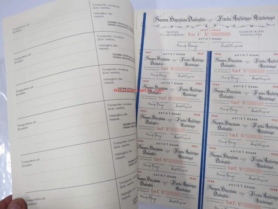 Osakekirjat, obligaatiot, debentuurit, osuuskirjat - Osakekirjat - kotimaiset blanco, specimen
