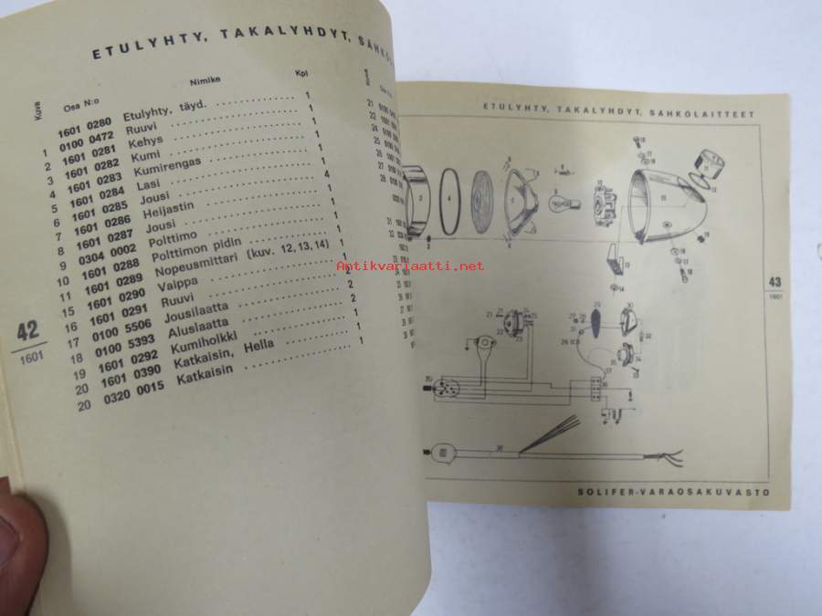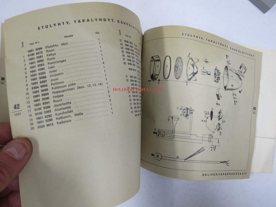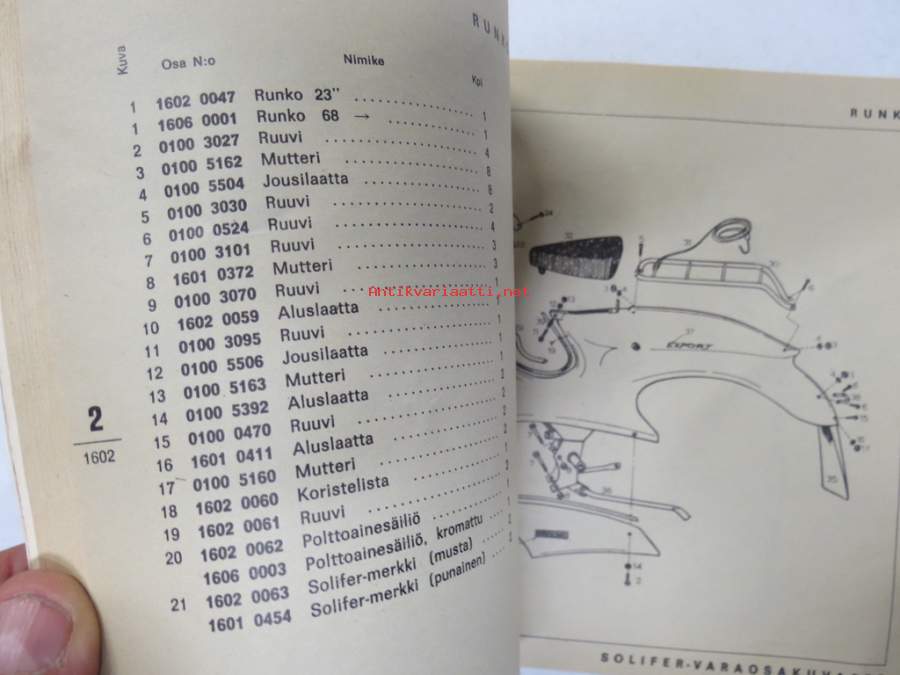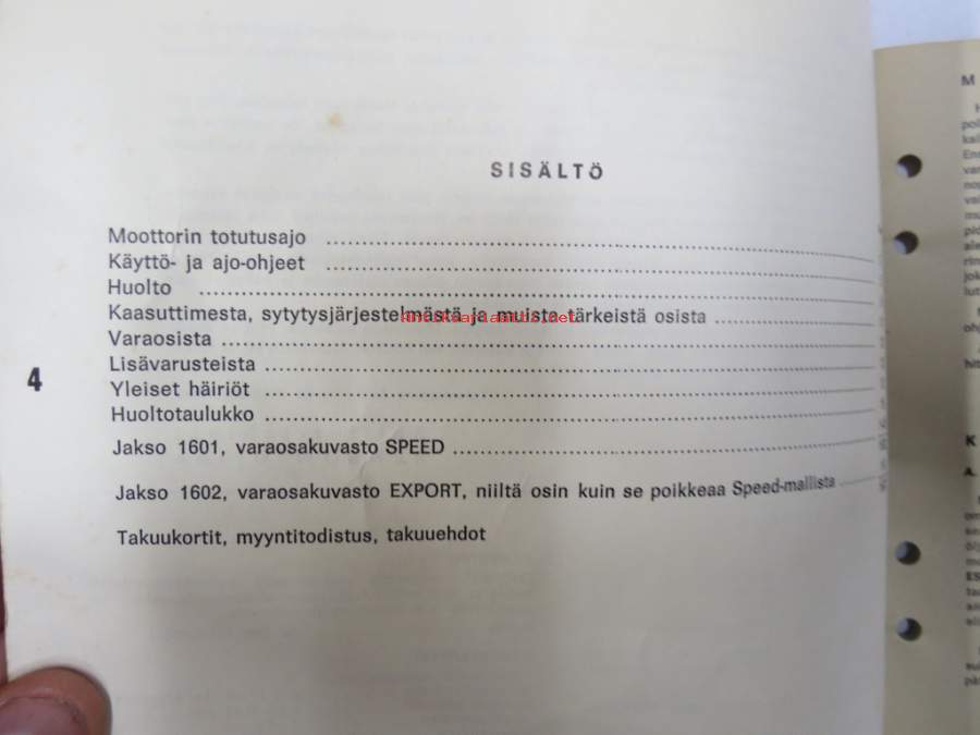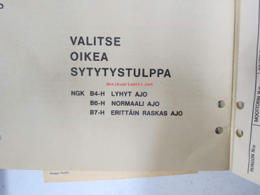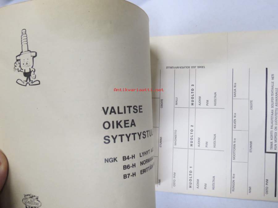 Solifer Export / Speed Thermomat käsikirja - käyttöohjekirja - varaosaluettelo, mukana Bensow-kuitti, johon merkitty osia ja tämä ohjekirja sekä Thermomat -irtotarra