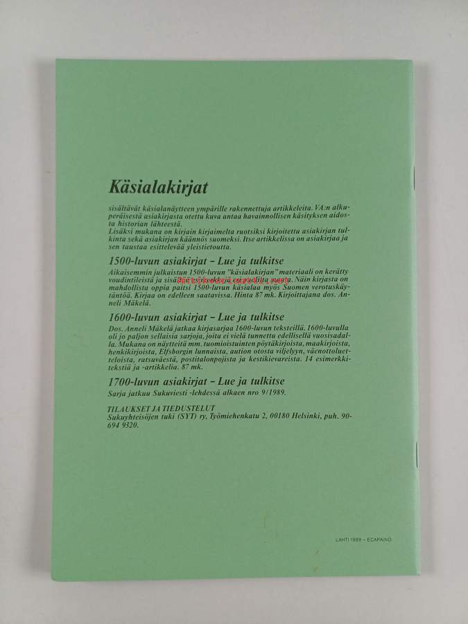 Sarja: Sukuviestin julkaisuja 1989Asiasanat: sukututkimus, asiakirjat, lähdeaineisto, paleografia