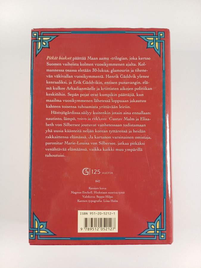 Erinomainen. Tarkempi kuntoluokka: K4- ; Aivan pienoista kolhua selkämyksen päissä, aivan pienoista kulumaa kansissa. Kansipaperin kunto: jonkin verran kulumaa/pienoisia repeämiä