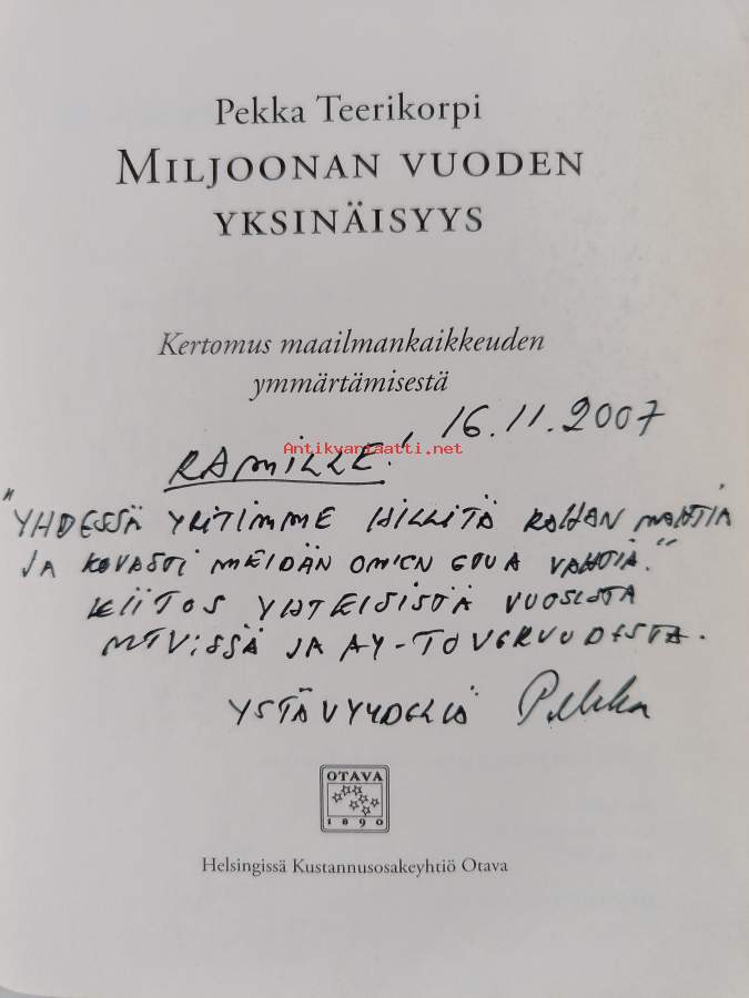 Miljoonan vuoden yksinäisyys : kertomus maailmankaikkeuden ymmärtämisestä (signeerattu, tekijän omiste)